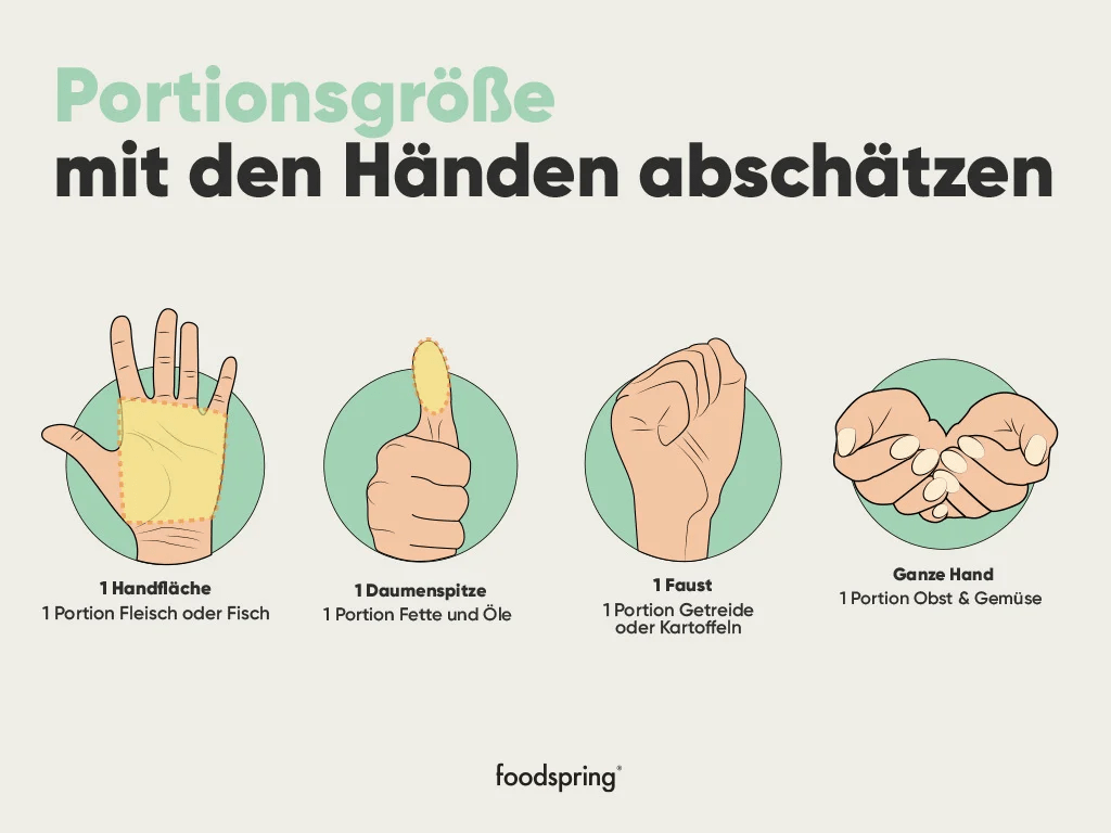 Als Orientierungshilfe nimm deinen Daumen – die Menge einer Portion entspricht in etwa einer Daumengröße.